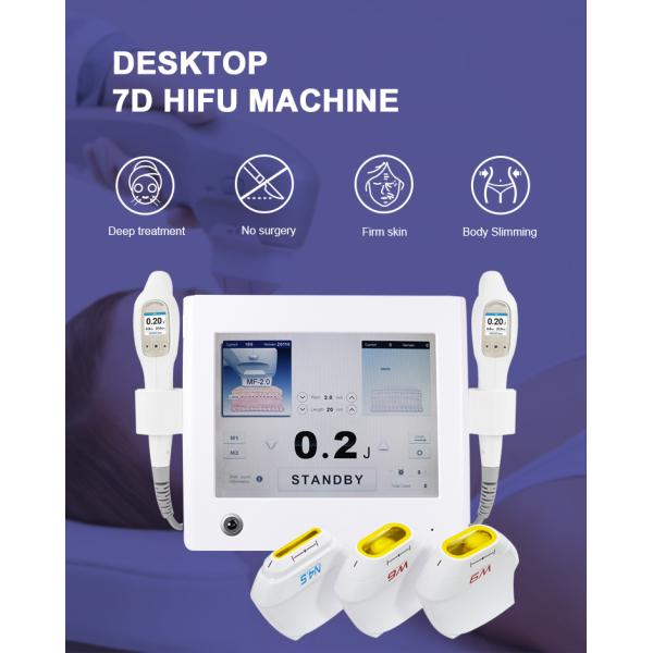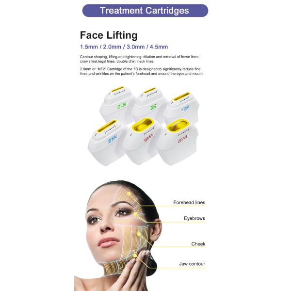 7D hifu high-energy focused ultrasound system has a smaller focus point than other HIFU devices. With more accurately transmits high-energy focused ultrasound energy at 65~75°C to the target skin tissue layer, which results in a thermal coagulation effect without harming surrounding tissues. While stimulating the proliferation of collagen and elastic fibers, it greatly improves the comfort and give you a perfect V face with the skin plump, firm, and elastic.