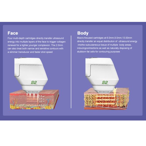 · Micro & Macro focused ultrasound technology, micro for face, macro for body.